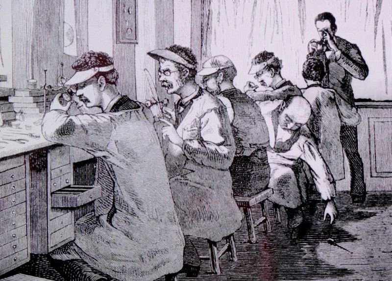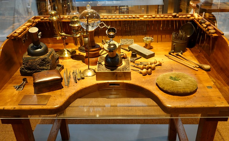 On apprécie tout particulièrement la reconstitution d’un atelier d’horloger, avec ces nombreux outils installés sur l’établi, ainsi que les vitrines détaillant les dizaines de pièces nécessaires à l’élaboration d’une montre ou d’une pendule !