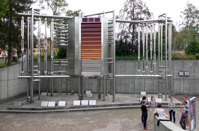 Après une bonne heure passée à remonter l’histoire de la Chaux-de-Fonds, on s’octroie une petite pause devant le carillon installé dans le Parc des Musées. La sculpture géante, créée en 1980, allie esthétisme et fonctionnalité, et tous les quarts d’heure, elle s’anime en musique. Néanmoins, on n’a toujours pas compris comment il fallait lire l’heure ! (voir la vidéo sur Facebook)
