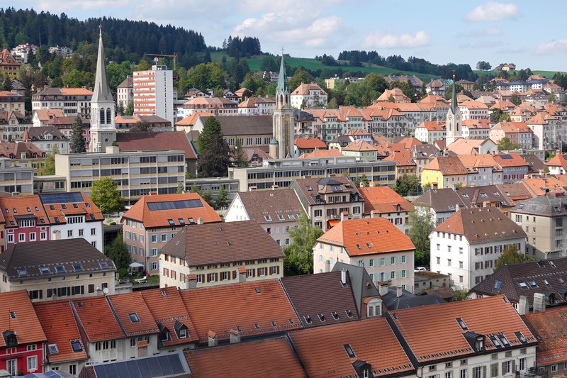Après un départ très matinal – 6h ! – de la Savoie, nous passons rapidement la douane suisse à Saint Julien en Genevois moins de deux heures plus tard. Le pays accepte encore les voyageurs en provenance de France, mais à partir du 14 septembre, une quatorzaine sera imposée à ceux originaires de certaines régions. Très satisfaits d’avoir franchi cette frontière sans encombre, on achète la vignette annuelle des autoroutes à CHF 40.-, et on prend la direction de La Chaux-de-Fonds, notre première étape. On s’installe au camping Bois du Couvent, l’accueil est chaleureux et détendu et le site bien agréable. Dès l’enregistrement, on nous délivre gracieusement la Neuchâtel Tourist Card, un pass bien pratique qui permet de visiter gratuitement toutes les curiosités des environs, et également d’emprunter les transports en commun. Sitôt le déjeuner avalé – à 11h ! – on enfourche les vélos, et c’est parti pour une première découverte de la ville et de ces musées. Premier constat : ce n’est pas plat ! Et à la vitesse où on file vers le bas de la cité, on se dit que le retour ne va pas se faire en trois coups de pédale…