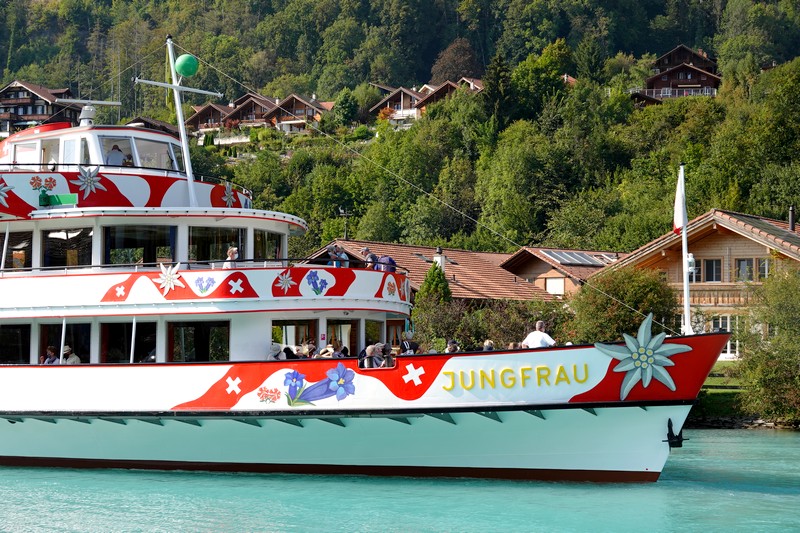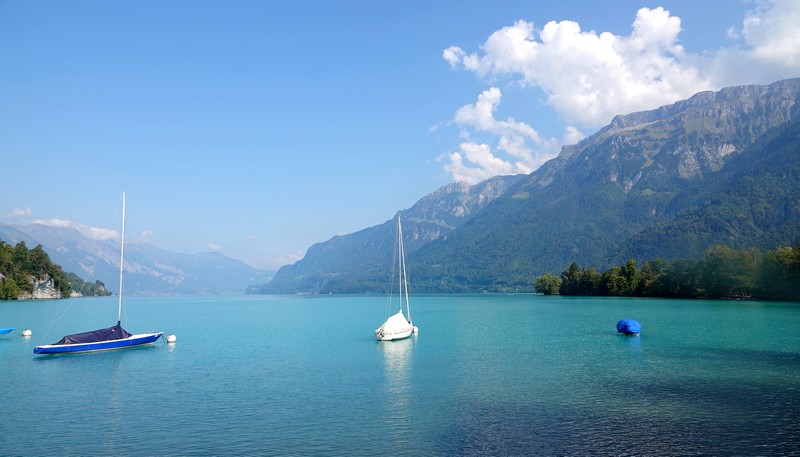 Après un bon moment de contemplation, on poursuit notre chemin vers le lac de Brienz, encore plus à l’ouest, qui affiche lui aussi une belle couleur bleu glacier. On ne se lasse pas d’admirer les bateaux – anciens ou plus modernes – qui sillonnent régulièrement ses eaux, déversant ses passagers dans les différents villages bâtis sur son rivage.