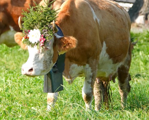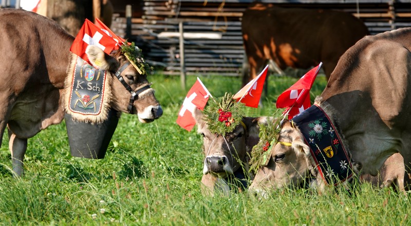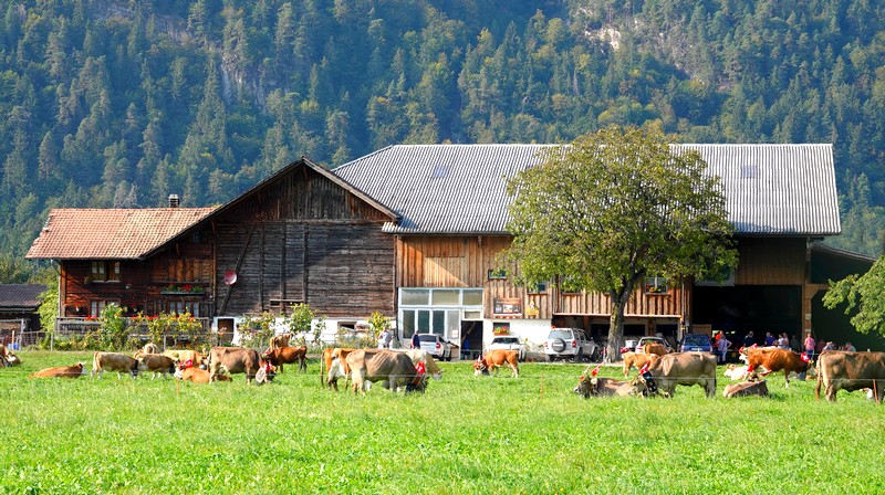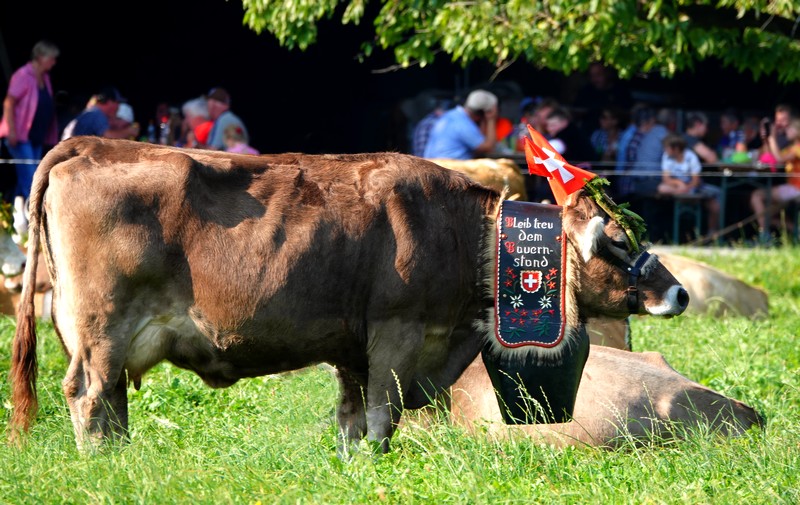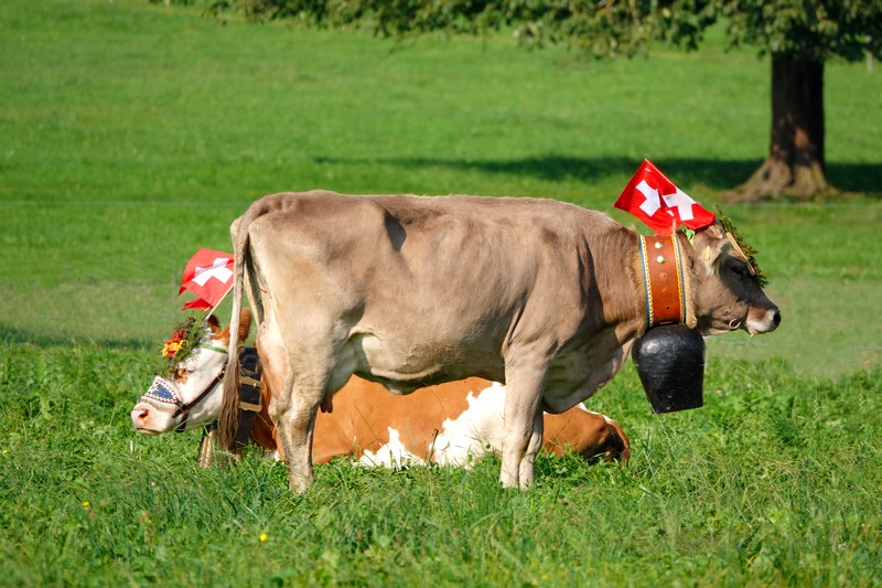 En prenant la route du camping, trois heures plus tard, on tombe par hasard sur une fête agricole – il y a encore beaucoup de fermes en activité, installées à la lisière même de la ville. Pour l’occasion, les vaches arborent drapeaux suisses, petites couronnes de feuillage et énormes cloches. Très photogénique ! Néanmoins, on n’est pas sûrs que les bovins soient de notre avis, tant ils semblent encombrés et gênés par leurs lourdes sonnailles…