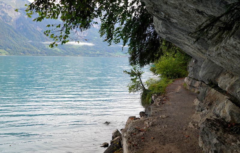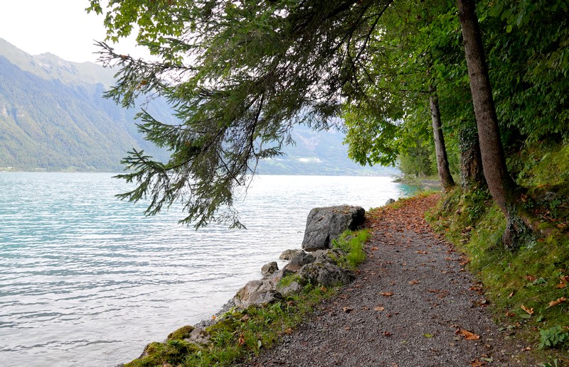 On attaque ensuite la rando qui longe tranquillement la berge du lac de Brienz. Le sentier est très agréable, sans aucune difficulté notoire, et par beau temps, il doit être plaisant de piquer une tête dans cette magnifique eau turquoise !