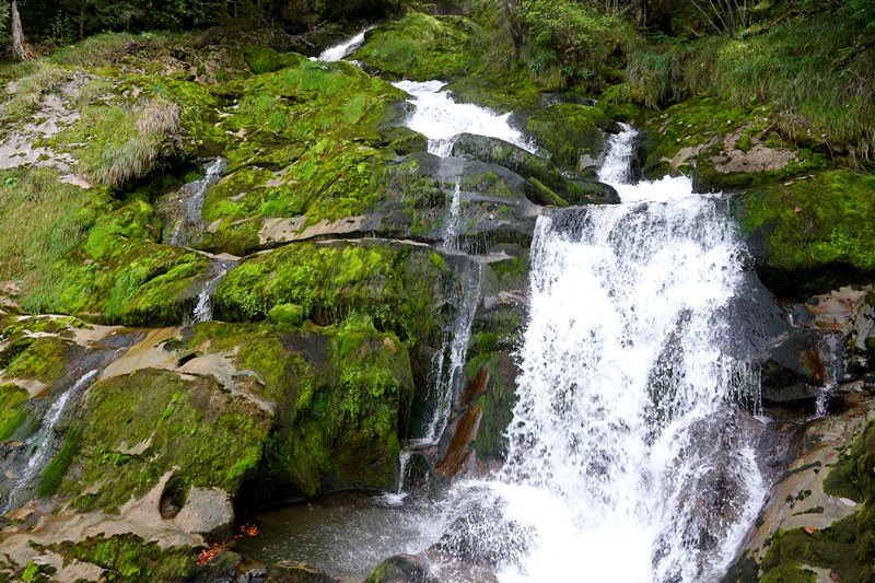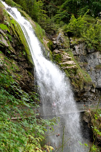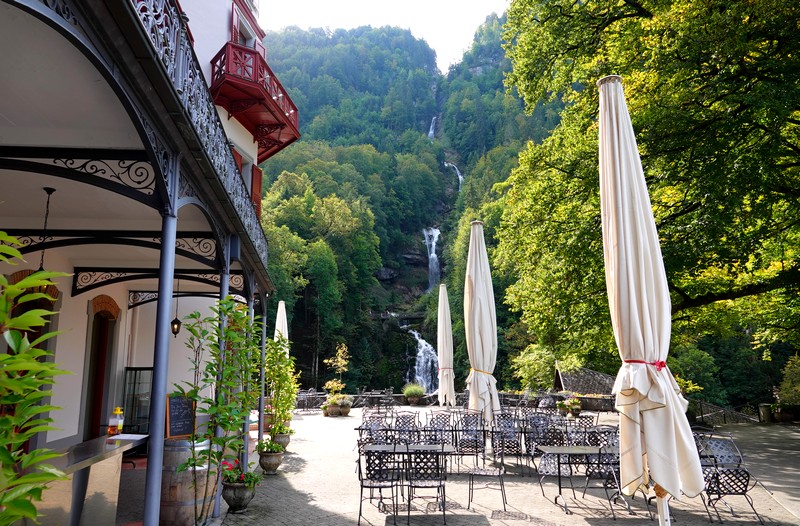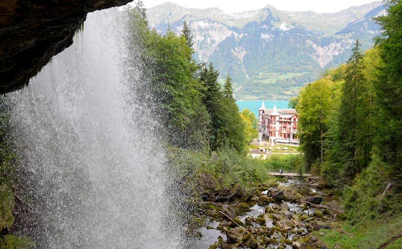 Le voyage est très court – quatre petites minutes ! – et après un trajet de 345m, on débarque 108m plus haut, dans un cadre idyllique. A gauche, se dresse le Grand Hôtel, et à droite les chutes de Giessbach attirent immédiatement le regard. Quatorze petites cascades dévalent ainsi la montagne sur un dénivelé de 500m !