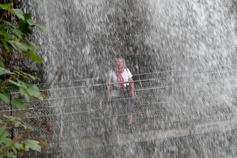 On profite d’un rayon de soleil inattendu pour filer tout de suite vers la chute. Un petit circuit de randonnée bien aménagé fait le tour des cascades inférieures, on passe même derrière un rideau d’eau sans se faire mouiller ! Avec plus de temps, et une meilleure météo, on aurait pu grimper beaucoup plus haut…