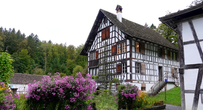 Dans cet immense domaine de 66 hectares, on découvre, au gré d’une véritable petite randonnée, une superbe collection de bâtiments ruraux traditionnels en provenance de toutes les régions suisses.