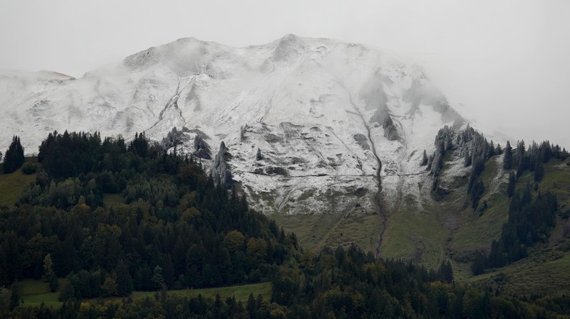 Il a plu toute la nuit, et ce matin, le thermomètre affiche à peine 10°C… Un coup d’œil aux montagnes environnantes nous apprend même que la neige est tombée tout près.