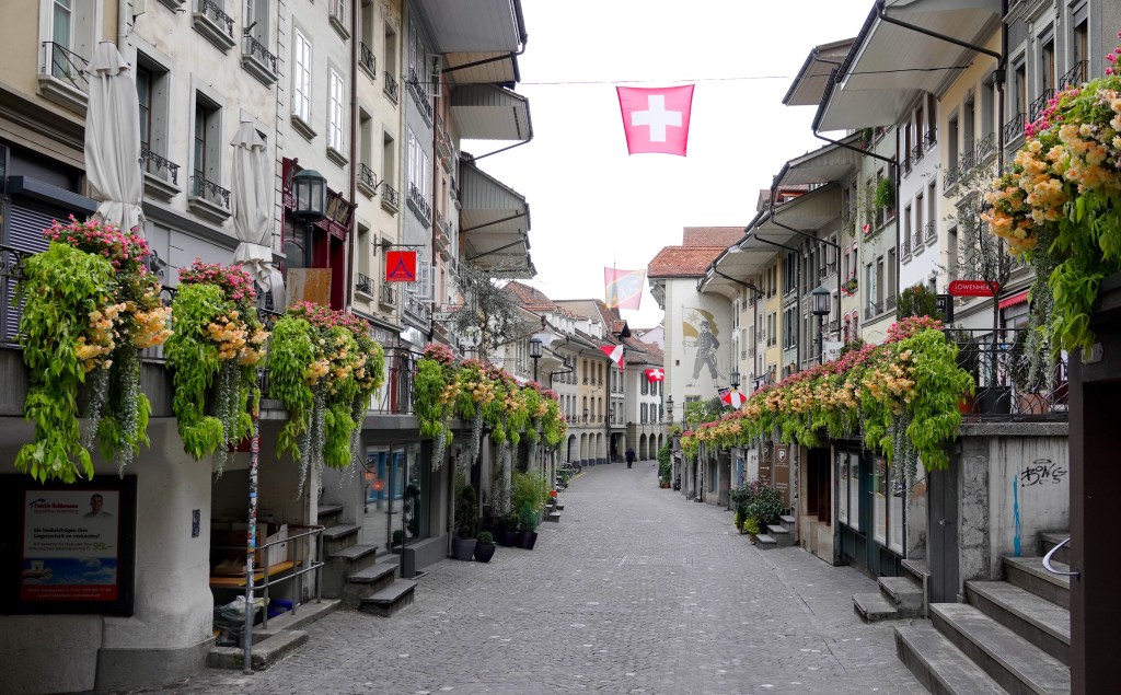On se balade un peu dans le quartier historique et on enjambe l’Aar par un vieux pont de bois datant de 1726 et on se retrouve rapidement dans Obere Hauptgasse, une rue qui a la particularité d’être à deux niveaux.