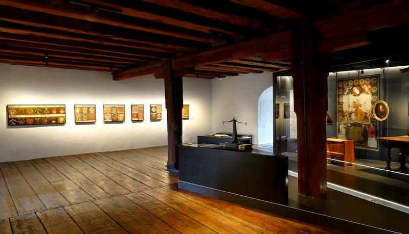 La muséographie est très agréable, et les panneaux informatifs rappellent les faits les plus importants du site. On est assez impressionnés par les belles tapisseries – dont une, capturée aux Bourguignons en 1476, à une époque où de tels objets faisaient office de trésor de guerre – ainsi que par les représentations des armoiries des différents Ducs qui ont, tour à tour, régné sur la ville.