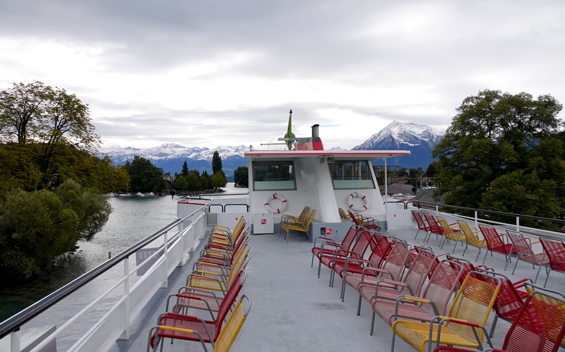 Les prévisions météo n’étant pas bien favorables pour l’après-midi, on presse le pas vers la gare maritime. A 11h40, on embarque sur un bateau qui va nous ramener à notre point de départ – Neuhaus, non loin d’Interlaken – en un peu moins de deux heures.