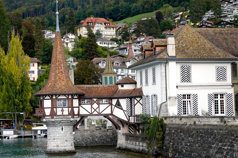 On se dirige ensuite vers deux autres très beaux châteaux, celui de Hünegg d’abord, puis celui d’Oberhofen, très romantique avec son donjon qui tombe presque dans les eaux du lac.