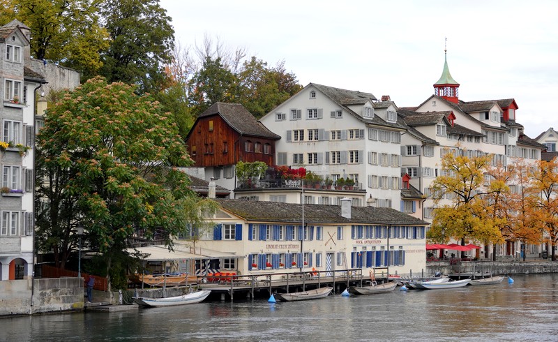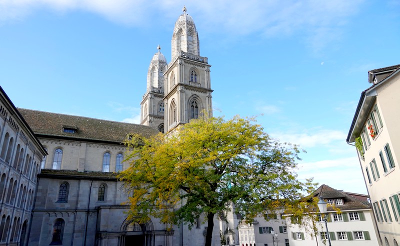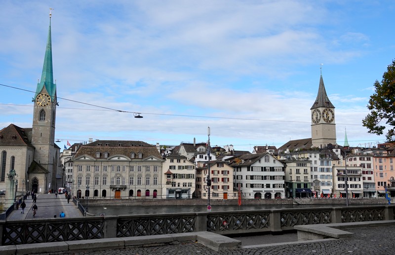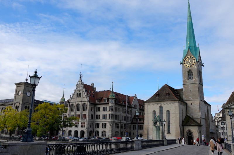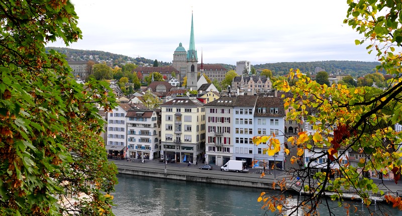 On traverse ensuite la Limmat pour rejoindre la rive droite. Depuis l’esplanade de la cathédrale, on a une jolie vue sur la rive opposée.