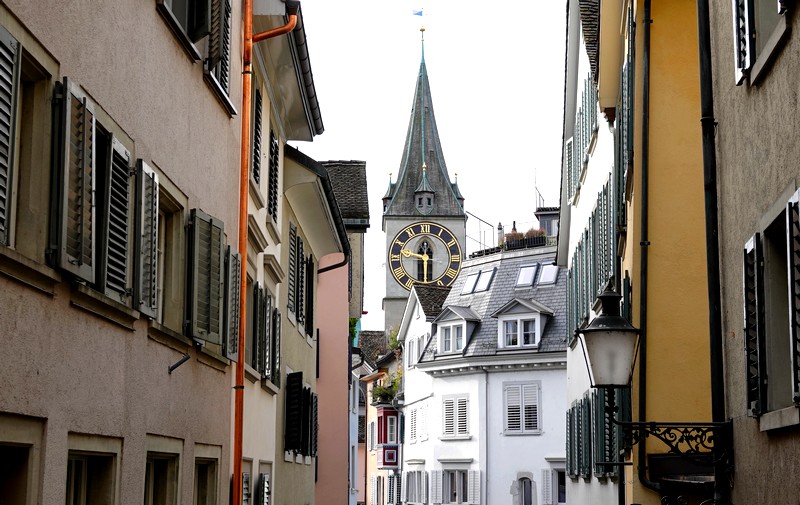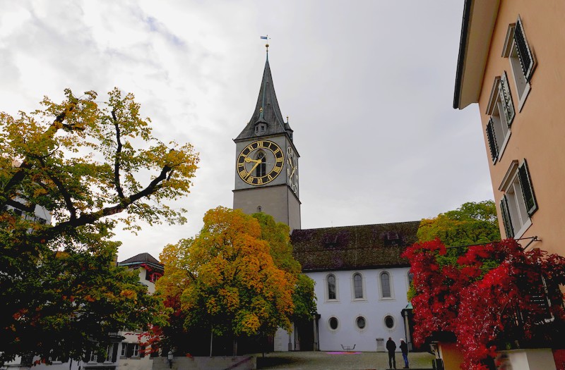 Au cœur du quartier, Sankt Peterskirche – l’église Saint Pierre – domine la ville avec son haut clocher, doté du plus grand cadran d’Europe – 8.70m de diamètre – créé en 1534. C’est aussi la plus ancienne église de Zurich, ses origines remontant au IXe siècle.