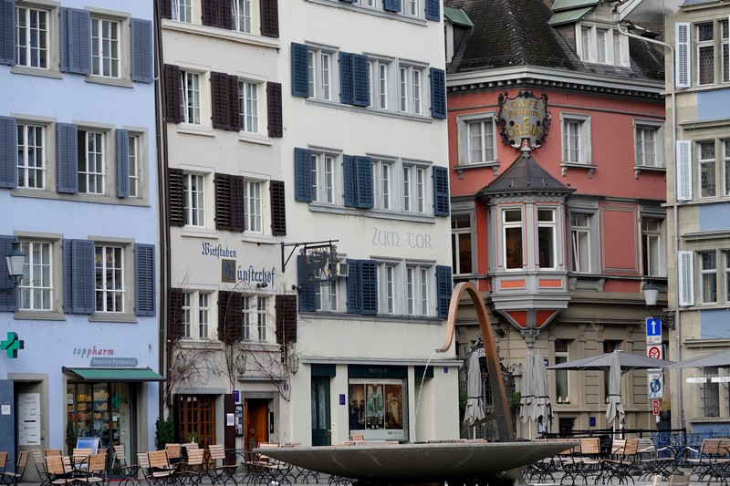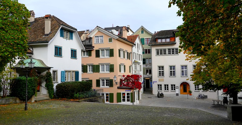 La balade se poursuit dans la Münstergasse, agréable et animée, et les ruelles alentours. Si certaines placettes se révèlent charmantes, la ville dans son entier manque cruellement de mise en valeur. Et si l’on perçoit aisément que les résidents y bénéficient d’une incontestable douceur de vivre, dans un cadre détendu, en revanche, le visiteur curieux reste un peu sur sa faim, le regard perdu entre deux grues et de multiples styles architecturaux pas forcément harmonieux. Bref, on l’aura compris, nous n’avons pas eu de coup de cœur pour Zurich !