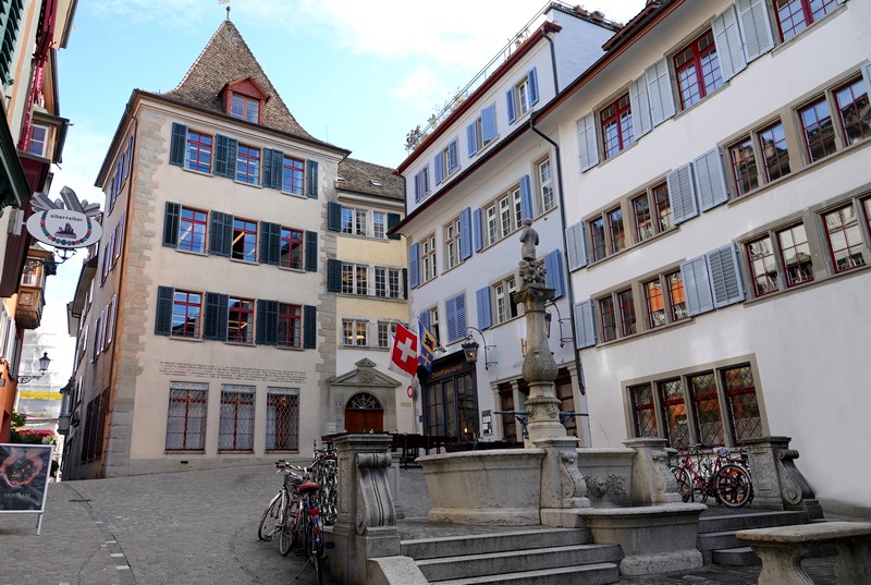Nous sommes maintenant à quelques encablures du quartier Schipfe, la vieille ville, que l’on rejoint par une rue en forte pente. Là, on apprécie beaucoup les ruelles étroites souvent dotées de magasins chics aux belles enseignes.