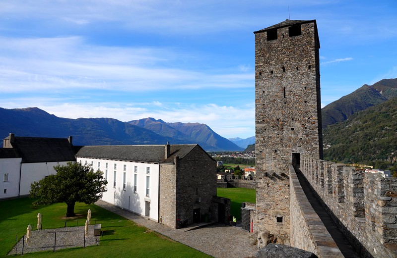 - Châteaux de Bellinzona, 10h-18h, Pass Bellinzona pour la visite des 3 châteaux, CHF 28-. / CHF 20-. avec le Ticino Ticket. Pour être honnête, on a trouvé le pass un peu cher pour la prestation. Si on ne souhaite pas visiter les musées ni forcément grimper sur les remparts du Château de Montebello, on peut se contenter de visites extérieures gratuites (l’esplanade et les remparts de Castelgrande sont en accès libre). Ces châteaux sont surtout l’occasion de faire une belle petite rando dans les environs de Bellinzona, environ 4km AS, 270m+. Possibilité également de rejoindre les deux châteaux « en hauteur » avec le bus n°4 au départ de la gare ferroviaire (départs peu fréquents, billet inclus dans le Ticino Ticket) ou avec le petit train Artu (au départ de la Piazza Collegiata, CHF 12-., réduction de 20% avec le Ticino Ticket).