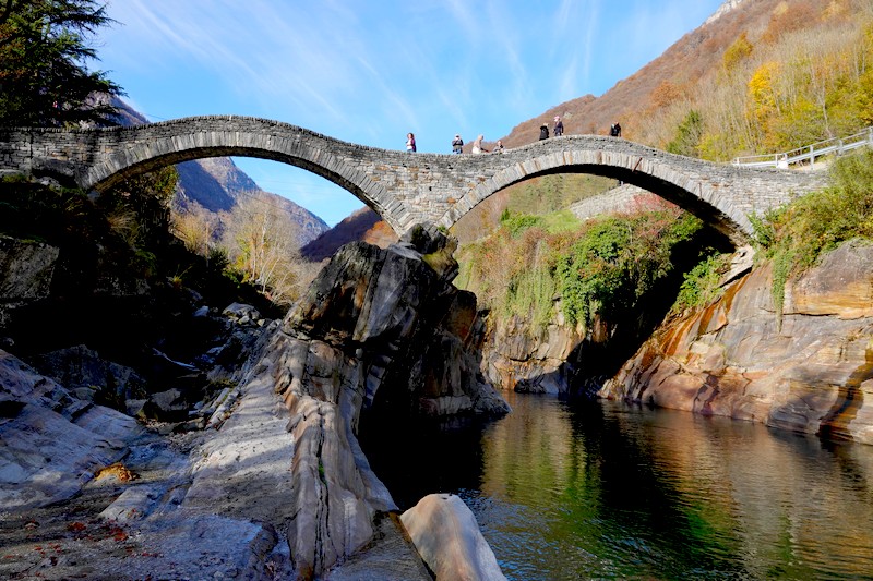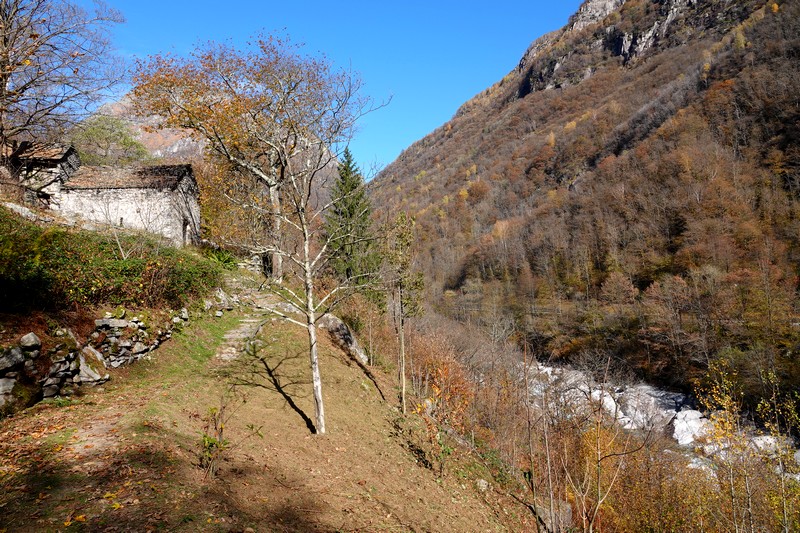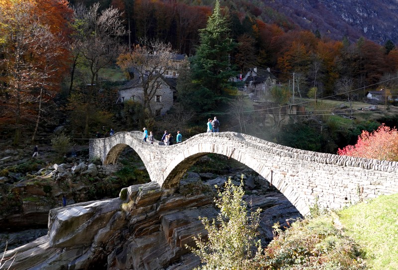 - Rando dans la vallée de la Verzasca, de Mergoscia à Lavertezzo, 9km, 440m+, 640m-, 3h30 avec les pauses, rando de difficulté moyenne, avec un terrain parfois irrégulier et accidenté. Bonnes chaussures de rigueur ! Accès à Mergoscia par bus 312 depuis Locarno (un départ toutes les 2h, donc ne pas hésiter à prendre celui de 8h05 pour bénéficier d’un ensoleillement maximum). Retour par bus 321 de Lavertezzo à Tenero / Locarno (départs peu fréquents, toutes les 2h/2h30). Liaisons incluses dans le Ticino Ticket. Plan B : pour ceux qui veulent s’épargner l’intégralité de la balade, se contenter d’un aller de Lavertezzo à Corippo (1h15, facile) avec un retour par bus depuis le pont, en contrebas du village (attention, départs très peu fréquents).