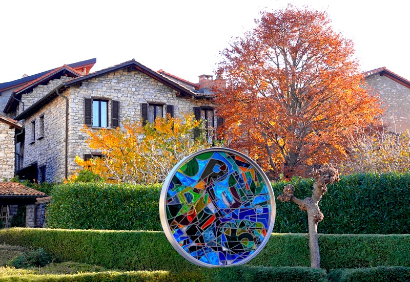 De nouveau, on quitte notre maison à roulettes alors que le jour pointe à peine, et c’est avec un peu d’avance que l’on arrive à l’arrêt de bus situé à 600m du camping. Bien nous en a pris, car le 311 déboule dix minutes avant l’heure prévue, et c’est à toute à l’allure que nous rejoignons Bellinzona, le chauffeur ayant sûrement une urgence qui nous échappe ! Là, on saute dans un train qui nous mène à Lugano, et après un coup de funiculaire pour rejoindre le bas de la ville, il ne nous reste qu’à nous poser dans le bus 12 qui monte à Brè Paese. Une fois de plus, nous sommes les seuls passagers à bord… Il est 8h40 quand on arrive dans ce village haut perché, et grâce à l’enchainement accéléré des transports, on a maintenant une heure d’avance sur le programme prévu ! Si vous vous souvenez, nous sommes déjà venus ici il y a deux semaines, mais le ciel étant alors franchement plombé, on s’était promis de revenir un jour de beau temps. A la différence de notre première visite où le funiculaire nous avait déposés au sommet du pain de sucre, en arrivant au village de Brè, il nous reste une grimpette d’environ vingt minutes – essentiellement composée de marches d’escalier – pour découvrir le panorama le plus beau de Suisse, dixit les guides touristiques et les locaux. Le restaurant installé au sommet est malheureusement fermé – on n’aura pas de café ce matin ! – mais on peut tout de même s’installer sur sa fantastique terrasse d’où l’on embrasse d’un seul regard tous les environs.
