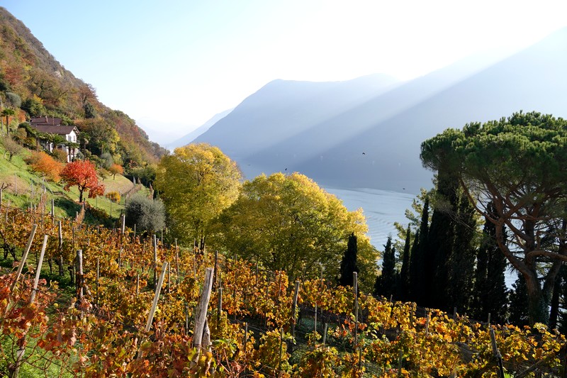 Il faut bien avouer que la vue sur le Monte San Salvatore, et plus loin sur les sommets du Valais – dont le Mont Rose – est époustouflante.