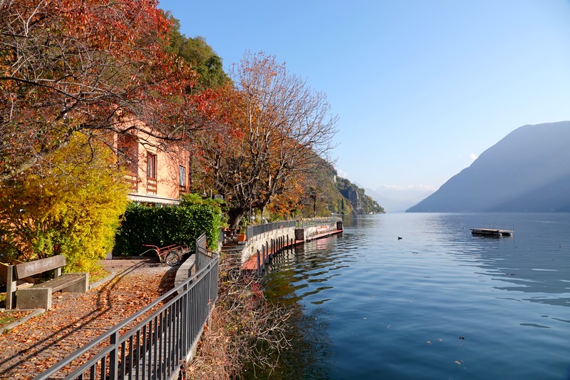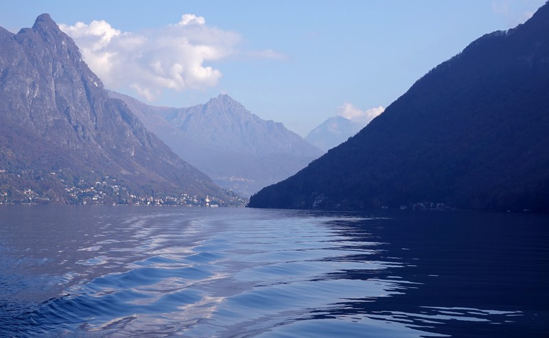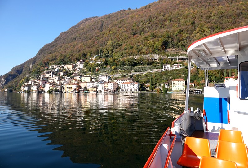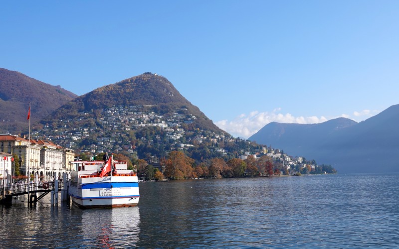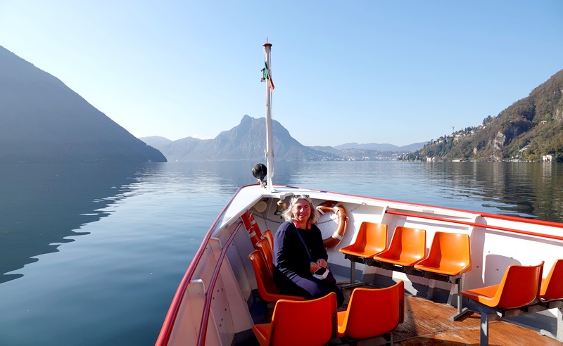 Pour bénéficier d’un angle différent, plutôt que d’emprunter le bus, on décide de retourner à Lugano par bateau. Par chance, on n’a pas trop à attendre le prochain départ – ils sont moins fréquents en basse saison – et à 11h20, on embarque pour une mini-croisière d’une vingtaine de minutes. Là encore, on en prend plein les yeux !