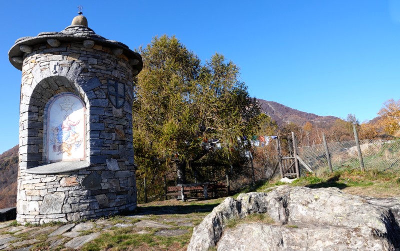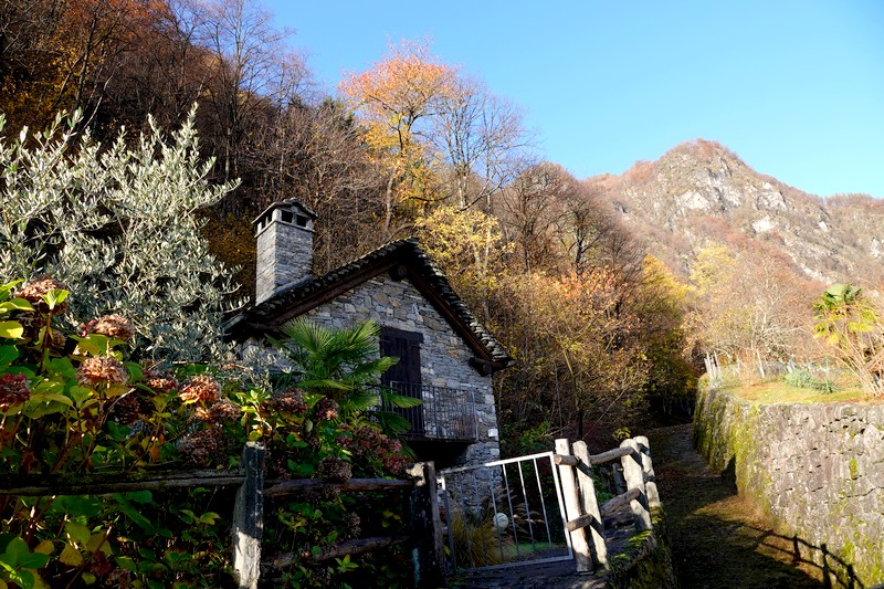 Après avoir traversé le hameau, on pinaille un peu pour trouver le bon chemin : en effet, cette fois, nous ne longeons pas la rive – ce sera pour une prochaine fois ! – et nous devons trouver l’itinéraire qui s’élève sur le flanc ouest de la Maggia.