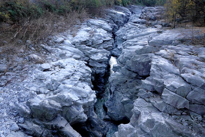 Le chemin suit d’abord la rivière, et là, on replonge dans l’ombre… Sûr qu’ici la lumière doit se faire rare tant le site est encaissé entre deux montagnes. Autant dire qu’à cet endroit, il fait plutôt frisquet !