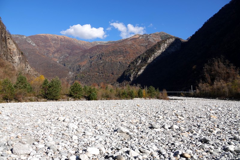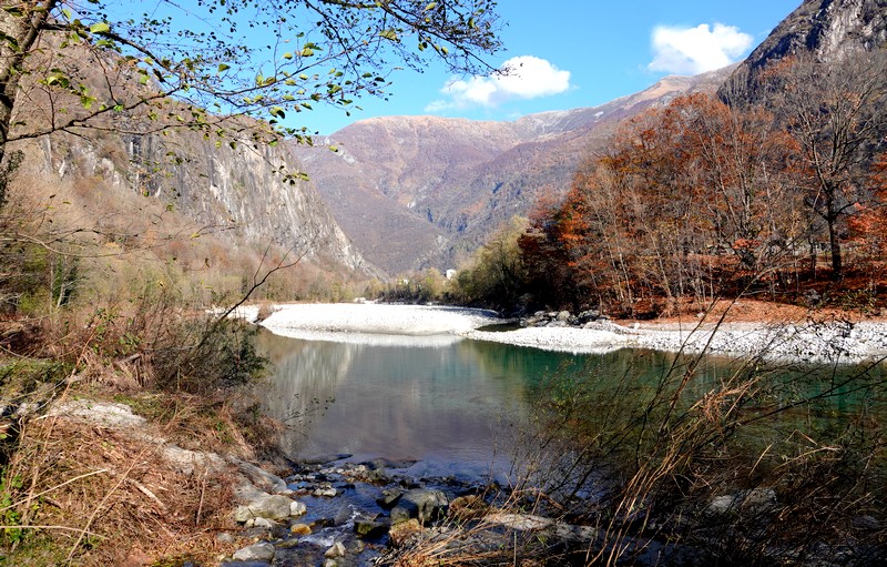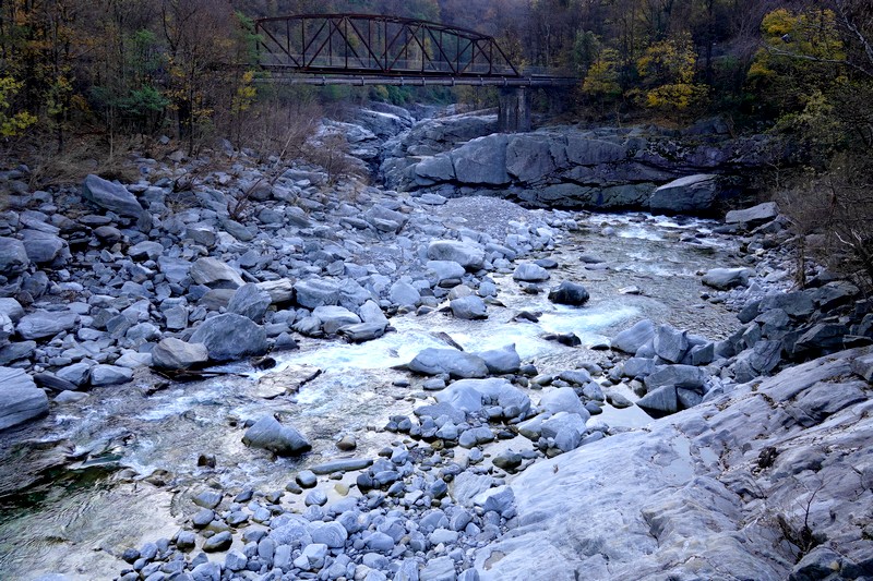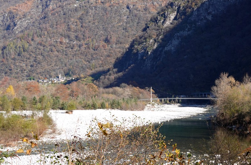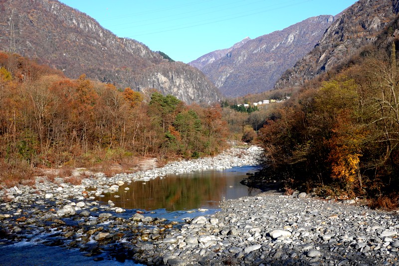 Rapidement, la vallée s’élargit, et la Maggia retrouve ses chaleureuses couleurs automnales…