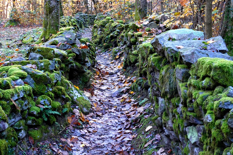 Je pensais qu’il s’agissait d’une balade très facile mais finalement, le sentier est une fois de plus assez piégeux car recouvert de feuilles mortes qui masquent racines et cailloux. Et comme les marches de pierre se succèdent tant à la montée qu’à la descente, l’itinéraire n’est pas si reposant qu’imaginé !