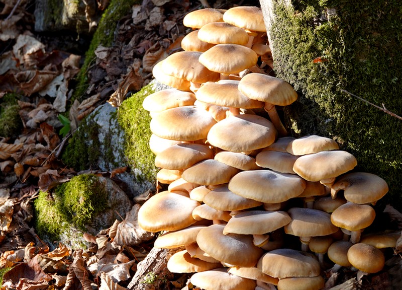 On ne se presse pas pour parcourir les quelques kilomètres qui nous séparent d’Avegno et on fait de nombreux arrêts pour observer végétation et champignons. Ici, ils poussent en masse au pied des arbres, mais malheureusement aucun n’est comestible. Dommage, ça aurait fait une bonne omelette !