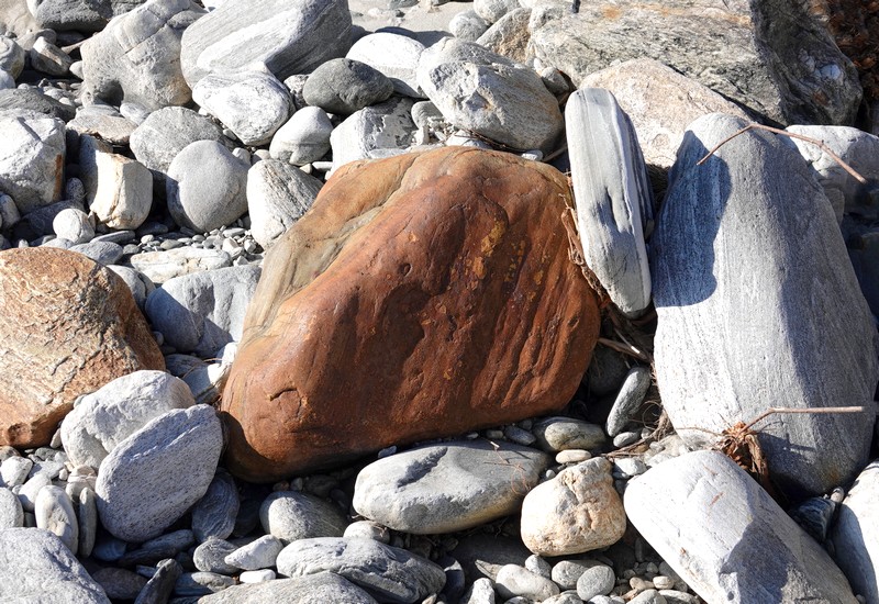 Après deux heures de marche – on a vraiment pris notre temps ! – on fait un pause pique-nique, confortablement installés sur les gros cailloux qui s’amoncèlent dans le lit de la rivière. Ces rochers, sculptés et polis par le courant, sont vraiment superbes, avec des teintes et des marbrures différentes…