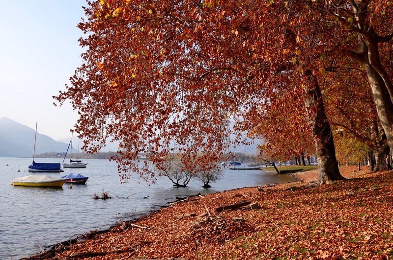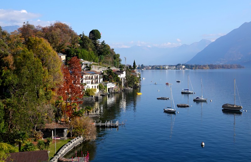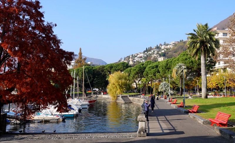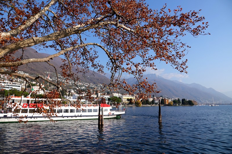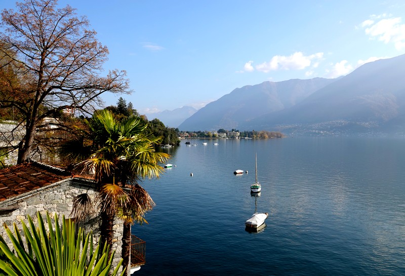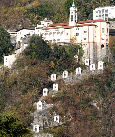 C’est la seconde fois que nous effectuons le parcours, et la tranquillité des lieux est particulièrement appréciable, même quand il s’agit de longer la riviera de Locarno, souvent encombrée de flâneurs – nous avions fait l’itinéraire le premier dimanche suivant notre arrivée dans le Tessin, et alors, il y avait foule ! On découvre même de nouvelles vues, dont une assez intéressante sur le sanctuaire de la Madonna del Sasso et sur son chemin de croix bien pentu !