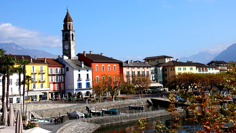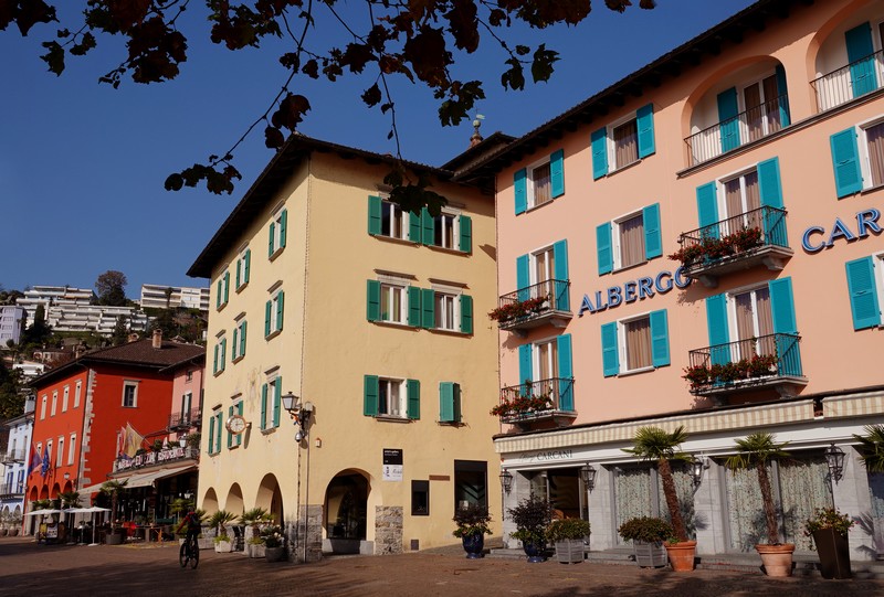 Encore quelques coups de pédales et on parvient à Ascona. Décidément, on a un faible pour ce beau petit village, surtout en semaine quand on n’est pas à touche-touche sur le quai ! On pique-nique presque les pieds dans l’eau, et après avoir dégusté une bonne glace, on pousse en direction de la frontière italienne. Le passage étant actuellement impossible, on rebrousse chemin, et sans se presser, on retourne au camping par la même piste cyclable.