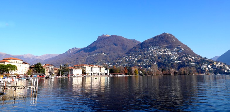 Ainsi, c’est dans une ambiance assez morose que l’on arpente le bord du lac où l’on ne croise que quelques rares passants. Quel contraste avec la rive opposée, où subitement, Lugano nous apparait comme une ville en perpétuelle effervescence ! Heureusement, on se console avec la magnifique vue sur le Monte Salvatore : où que se pose notre regard, on ne peut y échapper !