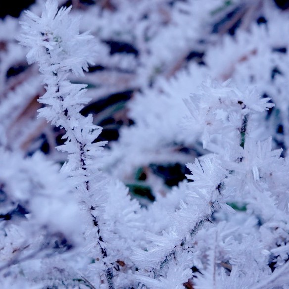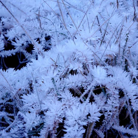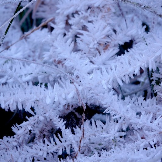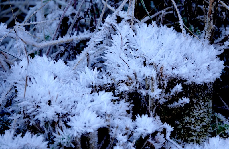 Résultat, on s’arrête tous les trois pas pour admirer les fleurs de givre qui tapissent le sol. Magnifique !