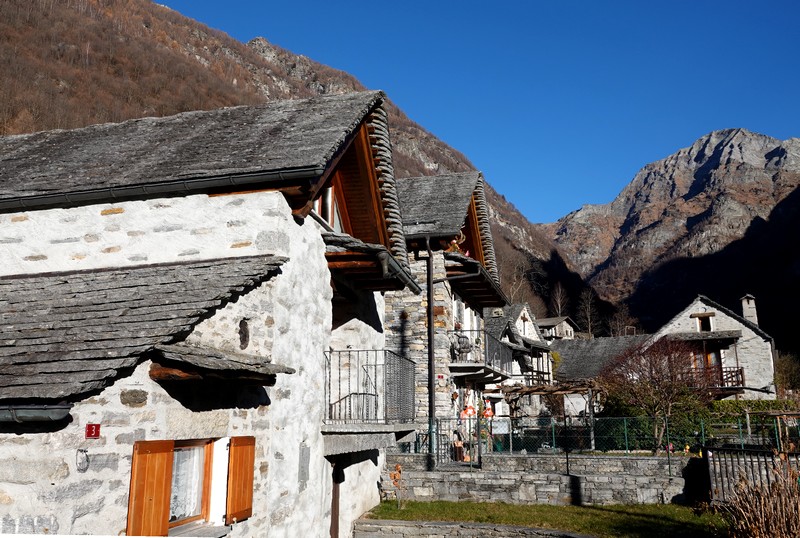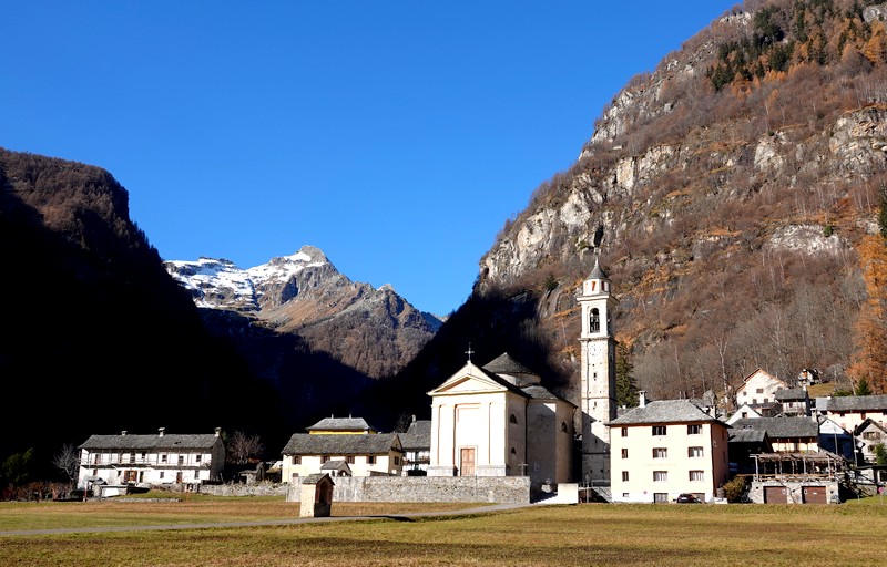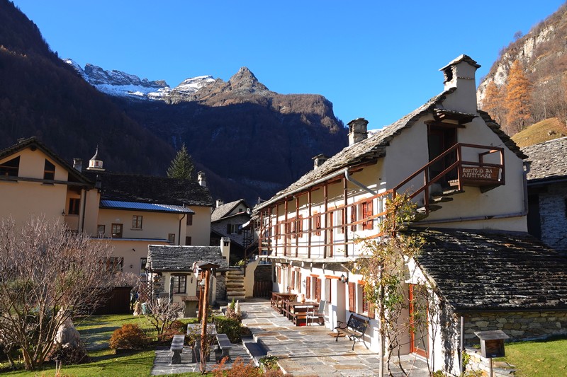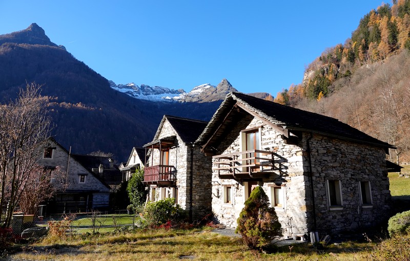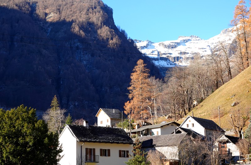 Toujours sans se presser, on rejoint Sonogno où l’atmosphère s’est considérablement réchauffée : bon, ce n’est pas l’été, mais on peut enfin retirer les gants !