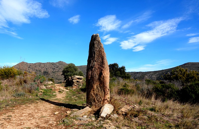 Après quelques hésitations – nombreux sont les sentiers qui sillonnent la sierra – on découvre le menhir de la Casa Cremada I, datant des IVe et IIIe millénaire av. J.C., et découvert par des habitants de Roses en 1996. Et c’est à l’ombre de ce gros bloc de gneiss haut de 2.4m, que l’on pique-nique, un brin impressionnés par un tel poids historique !