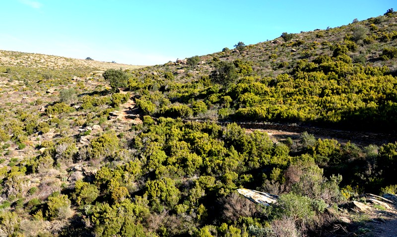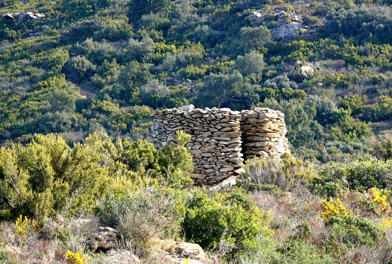 La balade se poursuit, on croise un autre dolmen, et surtout une très belle cabane en pierre sèche, probablement édifiée entre les XVIIe et XVIIIe siècles par les paysans qui cultivaient le champ où elle se trouve. Cet abri devait servir à entreposer les outils ou la récolte, ou bien pour se réfugier en cas de mauvais temps.