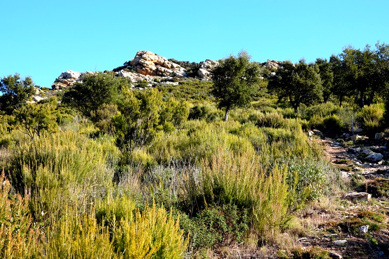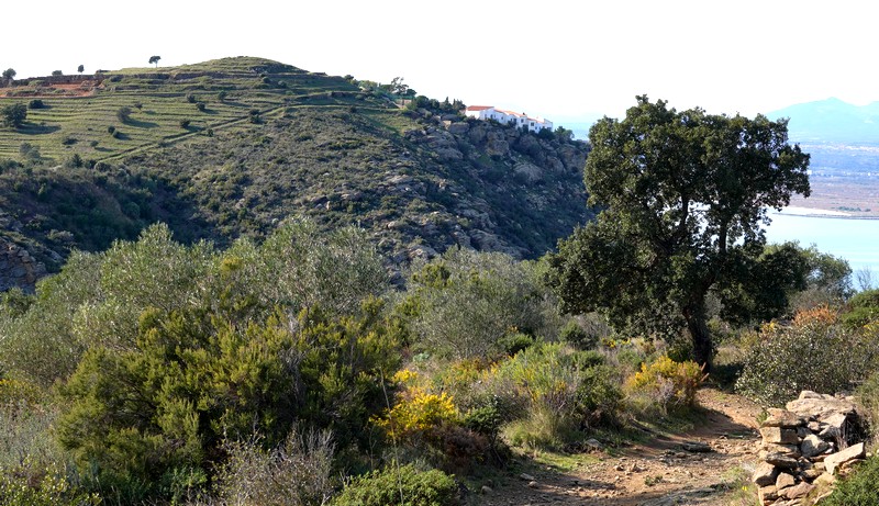 Roses – Itinéraire Mégalithes et Pierre Sèche – Vue sur la face nord de la colline où est posé le Castrum Visigoth