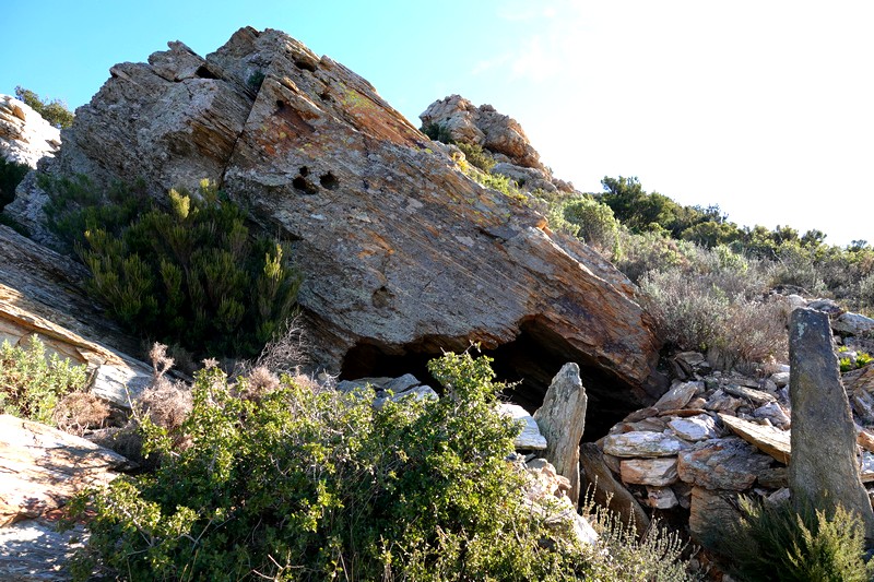 Nous marchons dans le sens anti-horaire, et après une belle petite grimpette sur un sentier très caillouteux, on parvient au premier site préhistorique : la grotte-dolmen del Rec de la Quarantena II, installée dans une cavité naturelle, et utilisée il y a 2500 ans comme chambre funéraire. Non loin, une seconde grotte-dolmen est également visible mais son accès est un peu plus acrobatique !