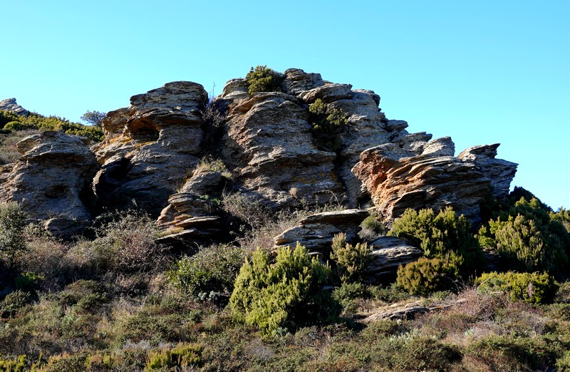 Rassasiés, nous poursuivons la rando qui nous fait faire une petite boucle jusqu’à l’extrémité du cap, passant ainsi par le Cap Gros, puis la pointe de la Trona.
