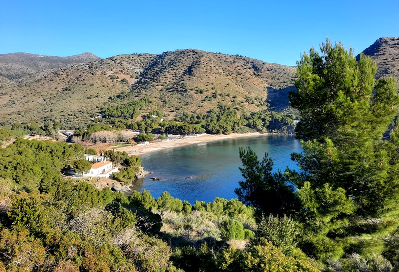 Après deux heures de marche, nous regagnons nos vélos, enchantés par cette jolie rando, plutôt facile mais ô combien scénique ! Le retour se fait en une petite heure, par la même route vallonnée qu’à l’aller – de toute façon, à moins d’aller à Cadaqués par la piste, il n’y en a pas d’autre !