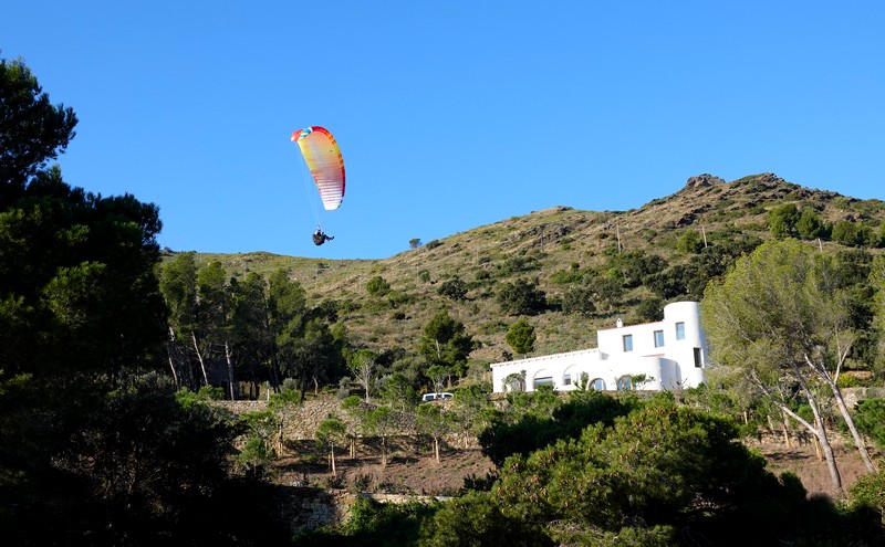 Le vent s’étant calmé – il a tout de même soufflé à près de 80km/h ces jours derniers – on peut de nouveau envisager une sortie à vélo. On part donc par la route de Cadaqués, et on pédale jusqu’au rond-point qui bifurque vers l’énorme radar sphérique de l’armée. La côte est sévère, et s’élève de 300m au-dessus de la mer en 10km… Gérard ne faiblit pas, mais il peine tout de même à me suivre : logique, comme chaque matin, un faux contact sur mon vélo bloque l’assistance électrique au maximum. Résultat, mon cher destrier se transforme instantanément en scooter ! En général, l’effet est de courte durée, et ne perdure que quelques kilomètres tout au plus. Mais là, c’est à toute vitesse que je rejoins la bifurcation !