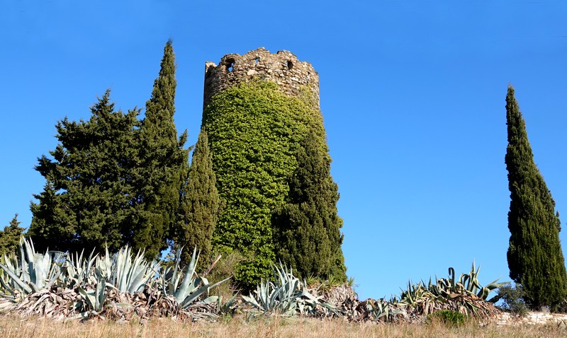Une fois nos montures parquées, c’est à pied que nous attaquons le sentier n°16 qui grimpe – rapidement mais assez abruptement ! – aux ruines d’une ancienne tour de guet, construite en 1598 pour permettre aux populations alentours de surveiller la côte pour prévenir les attaques de pirates. A 171m d’altitude, c’est là que nous pique-niquons, une fois de plus avec vue sur un panorama exceptionnel !