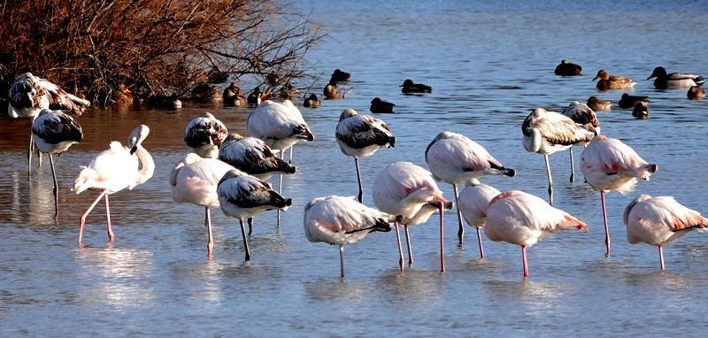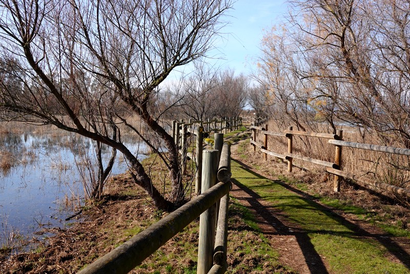 Le sentier longe l’Estany del Cortalet, et rapidement, on effectue un premier arrêt à l’observatoire Gantes. De cette cabane, on bénéficie d’une très belle vue sur l’étang, peuplé principalement de flamants roses, hérons cendrés, grands cormorans et canards colverts.