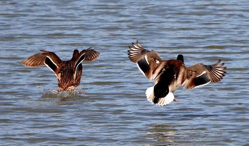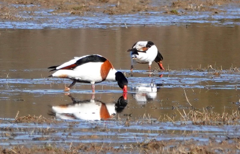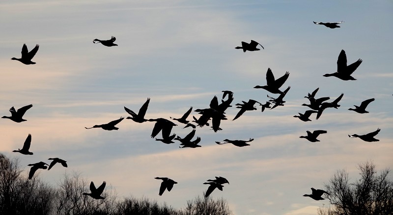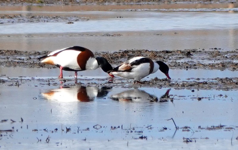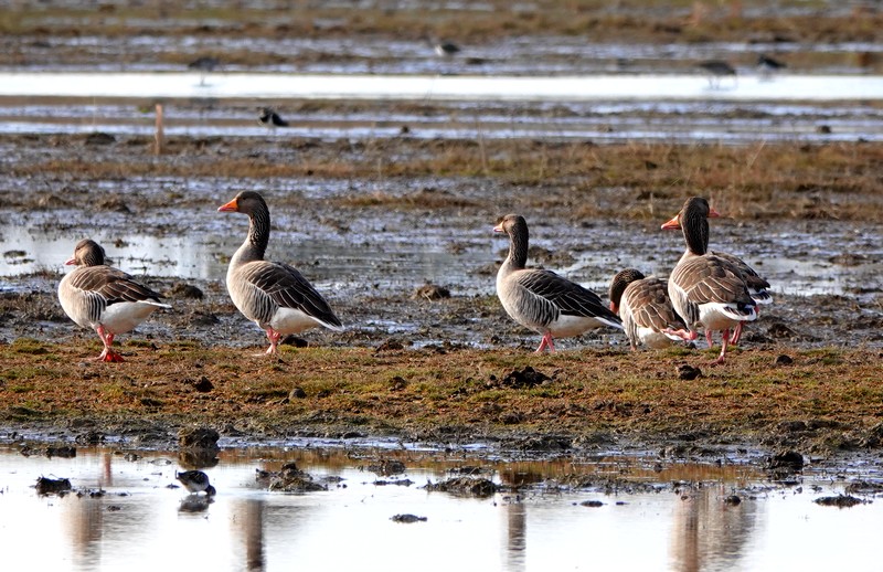 Ces étangs sont peuplés d’oies cendrées, de tadornes de belon, de courlis cendrés, de limicoles et de vanneaux huppés. Ces deux dernières espèces sont d’ailleurs particulièrement fascinantes à observer en vol, et je crois même que c’est la première fois que l’on voit une formation composée d’oiseaux appartenant à des familles différentes.