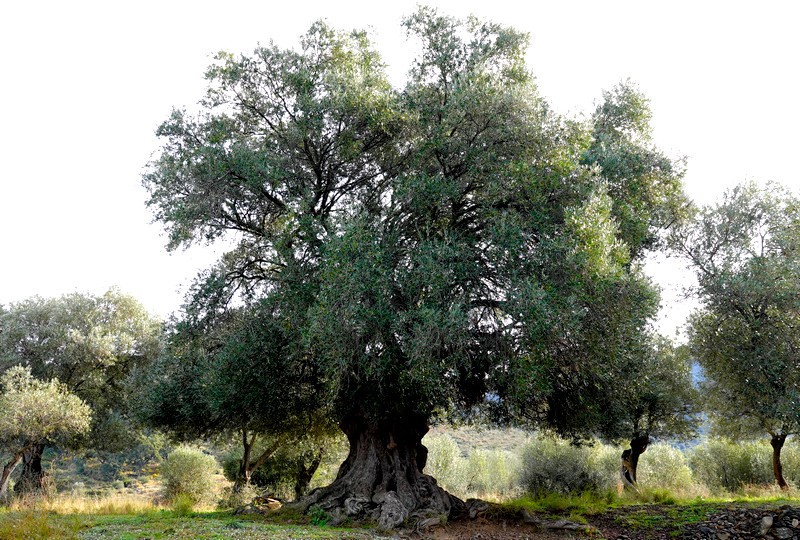 Le ciel est encore bien chargé ce matin, mais comme la pluie n’est pas annoncée, on décide d’entreprendre une rando jusqu’au Puig de l’Aliga – ou Pic de l’Aigle. C’est le dernier sommet du coin qu’il nous reste à gravir, et même si on commence à s’habituer aux vues panoramiques sur la baie de Roses, on ne s’en lasse pas ! Vers 10h, on part donc à vélo jusqu’à Mas Oliva, un quartier de Roses un peu excentré. Comme souvent, on cherche un moment le point de départ de la balade – et hop, une côte pour rien dans les mollets, ce n’est pas la bonne route ! Enfin parvenus à l’attaque du chemin, on parque les vélos, et on part à pied à travers une très jolie plantation d’oliviers. Le plus beau d’entre eux est multi-centenaire, et affiche une belle circonférence…