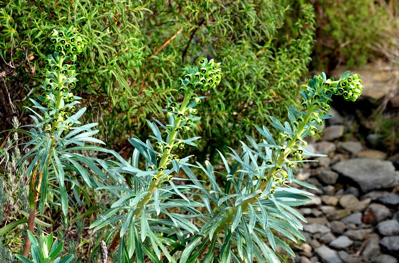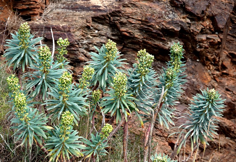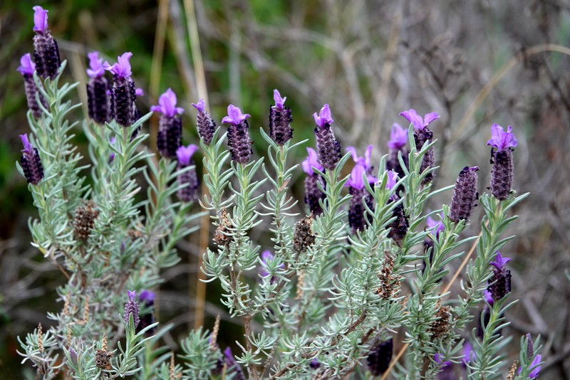 En remontant la vallée, on effectue de nombreuses pauses pour admirer la végétation presque printanière. Lavande stoechas, euphorbe des vallons et genêts épineux sont en fleur, et cette touche de couleur éclaire un peu la grisaille du ciel !