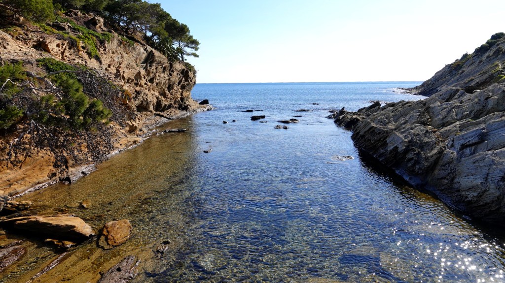 Parvenus à ce point, on se dit qu’il est peut-être temps de rebrousser chemin car, si on s’écoute, on va rapidement se retrouver au Phare de Cala Nans – phare qui sera le but d’un rando prochaine. Cette fois, on évite la traversée par la propriété, on passe par la plage des Sortell et on emprunte le sentier côtier jusqu’à l’extrémité sud de la plage des Llané Gran.