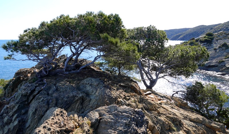Dans un style plus naturel, on observe également les curieuses roches qui parsèment la campagne, des schistes métamorphiques aplatis en feuilles, autrefois très utilisés pour construire murets et maisons. Au détour d’un virage, on aperçoit une dernière fois le clocher de l’église de Cadaqués, et au loin l’ilot rocheux El Cucurucuc souvent représenté dans les toiles de Dali…