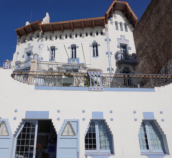 Mais avant d’imaginer – et d’affronter ! – la belle côte qui nous attend, on fait un dernier tour de la baie, vers le nord cette fois. On passe d’abord devant la jolie et surprenante Casa Serinyana – aussi appelée Casa Blaua – dont le bleu des volets et des détails ornementaux tranche avec la blancheur des murs. La maison, réalisée dans un style moderniste, date de 1915. A cette époque, nombreux furent les habitants à s’exiler vers l’Amérique latine – et principalement Cuba – pour y faire fortune. Une fois enrichis, ces Indianos revinrent au pays et se firent construire de magnifiques bâtisses, inspirées du design et de la décoration des constructions cubaines.