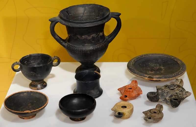 Après s’être promenés pendant presque deux heures dans les ruelles antiques, on fait un tour au musée. Celui-ci, installé depuis plus de cent ans sur les ruines réhabilitées d’un ancien couvent, est fermé en raison du covid, mais une salle présente tout de même quelques objets retrouvés lors des fouilles. Intéressant !